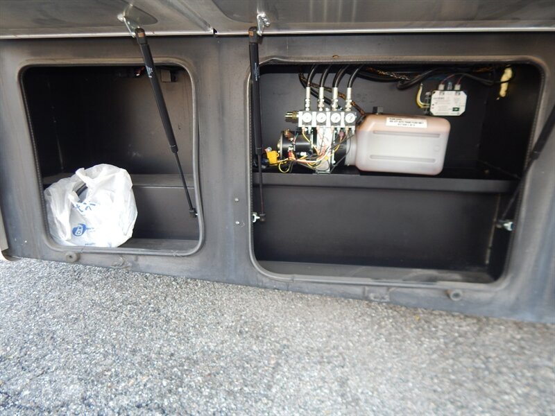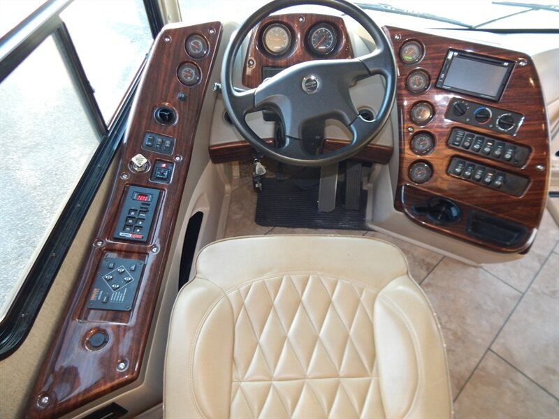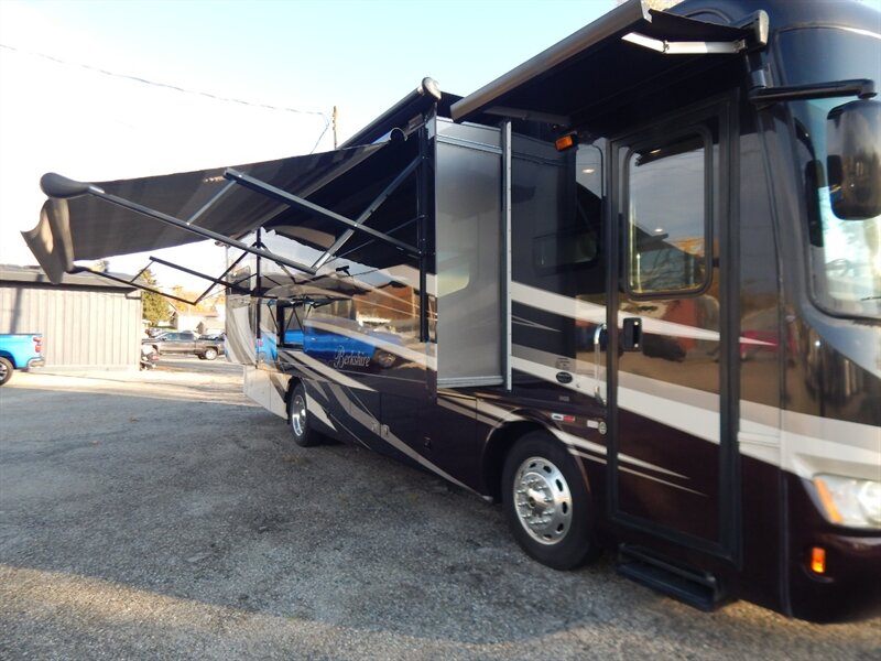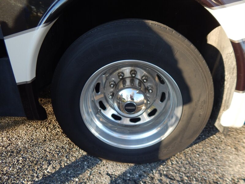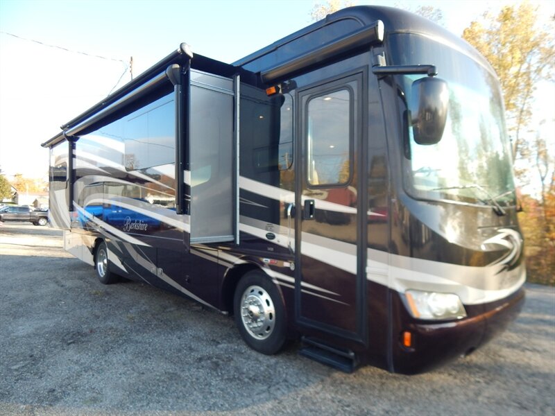 This luxury RV measures approximately 35 feet 7 inches in length and features 4 slides, king size bed, a 340HP Cummins diesel with 6-speed automatic Allison transmission, Onan diesel generator on a slide, raised rail Freightliner chassis, Neway air suspension and Sachs tuned shock absorbers. Optional equipment includes the beautiful full body paint exterior, stackable washer/dryer, slide-out tray in basement storage area, cockpit overhead TV, L-shaped sofa and a dome satellite. The Forest River Berkshire features one the most impressive lists of standard equipment you'll find in the industry including a large LCD TV in living room, a large exterior TV, heated holding tanks, 3 camera monitoring system, built in navigation system, 4-point fully automatic Equalizer hydraulic levelers, frameless dual pane windows and much more.